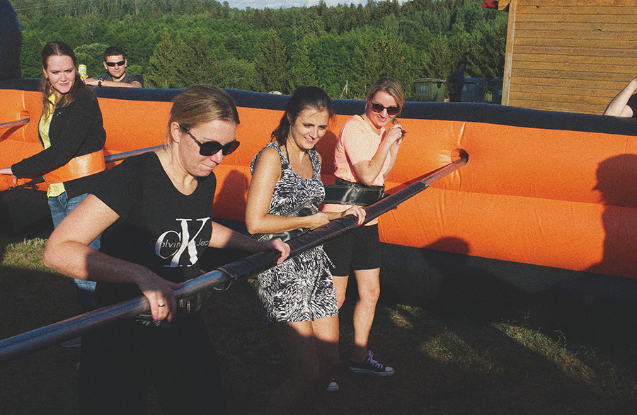 Galvojate baidarių krūvio užteko? Neeee!!! Dar laukė kitos pramogos: kliūčių pilnas batutas, kuris padėjo suprasti, kuris čia tarp mūsų greičiausias 🥇🤸‍♂️ dartbolas leido pamiklinti kojų taiklumą 🎯 o žaisdami pripučiamą futbolą bei žaidimą „Kranistas“ tik įsitikinom, kokia stipri mūsų komandos dvasia! ⚽ 🍊